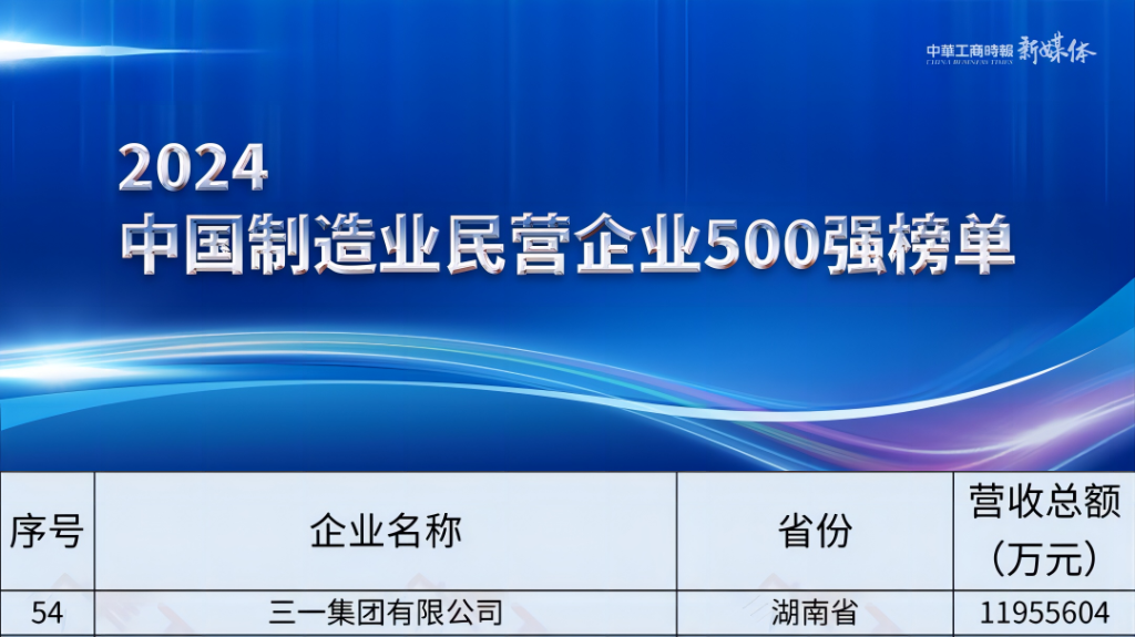 榜單顯示,三一集團位列“2024中國民營企業500強”第81位,同時榮膺“2024中國制造業民營企業500強”第54位。 在中國民營企業500強的湖南企業中,三一集團同樣排名首位。 今年全國工商聯組織開展第26次上規模民營企業調研,共有9642家2023年營業收入5億元以上的企業參加,其中營業收入前500位的企業為2024中國民營企業500強。 結果顯示,面對復雜嚴峻的國際環境和艱巨繁重的國內改革發展穩定任務,在以習近平同志為核心的黨中央堅強領導下,民營企業500強堅定信心、應對挑戰,認真踐行新發展理念,聚焦主業、做精實業,加強自主創新,走高質量發展道路,整體上呈現穩中有進、質效同升的良好發展態勢。 過去一年,圍繞全球化、數智化、低碳化戰略,三一集團再創歷史最佳海外經營業績、全球化制造布局加速、數智化走深走實、電動化產品市占率遙遙領先、新能源產業業務屢屢突破...... 當前,三一集團堅持高質量發展經營原則,大力推動新質生產力建設,堅定不移地落實“三化”戰略,努力建設世界一流企業,為推進中國式現代化作出更大貢獻。